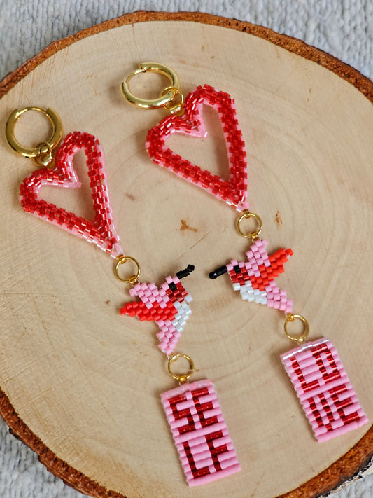 ❤️✨NEW✨❤️ SELF LOVE ✨ ❤️✨ Heart, Letters & Hummingbird Beaded Earrings