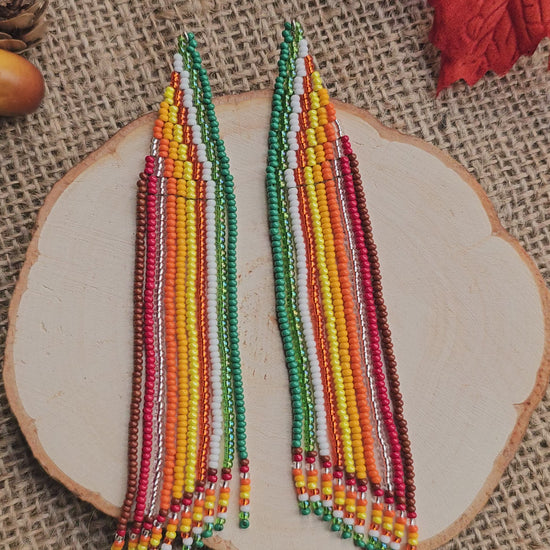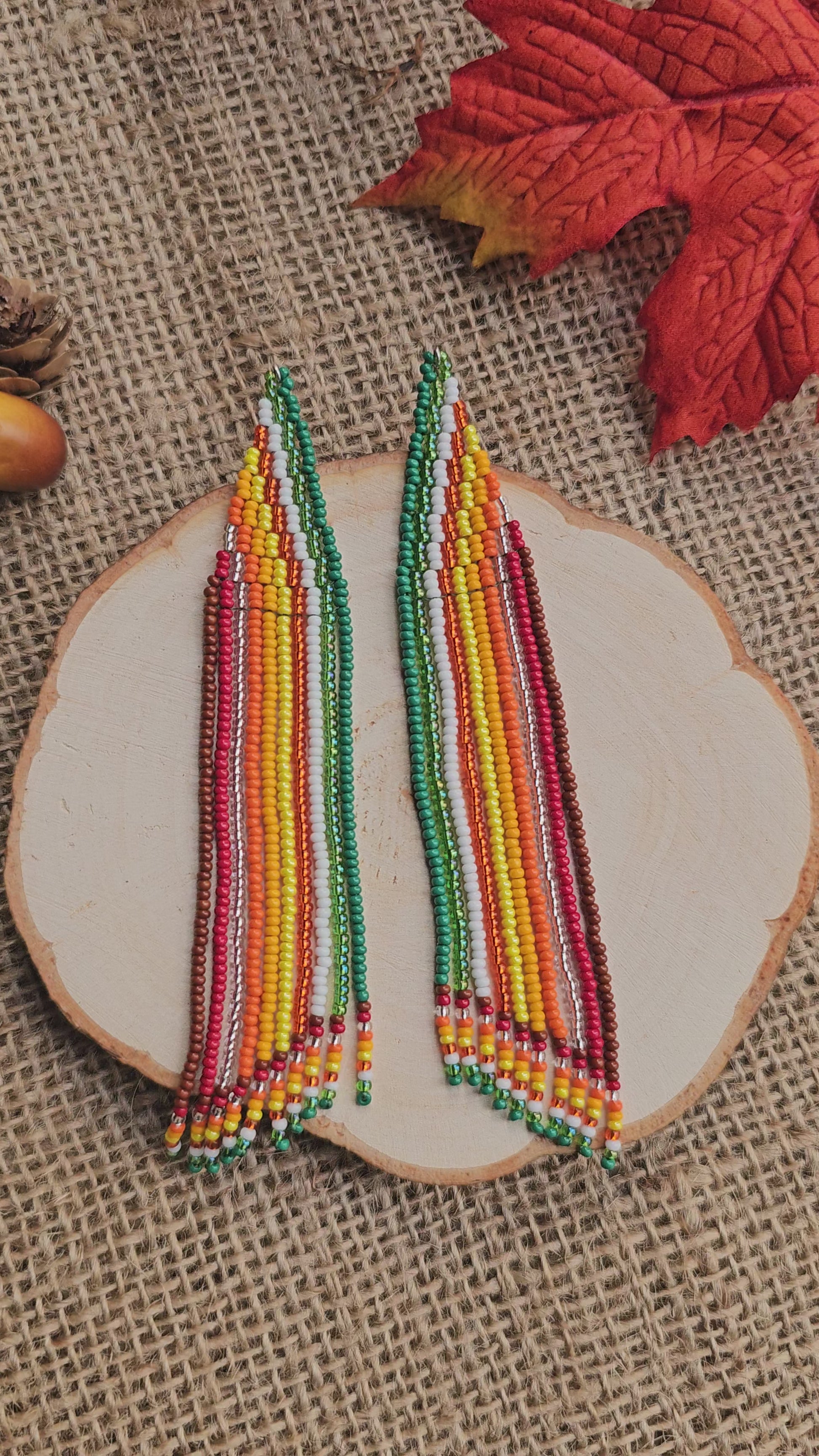 🍂🌈"Fall Rainbow Earrings" are a vibrant masterpiece of Beading artistry, boasting ten distinct colors that pay homage to the enchanting palette of autumn. Each color in this spectrum carries its own significance, collectively representing the transformative beauty of the season. From the rich, earthy tones of reds and oranges symbolizing the changing leaves to the deep blues and purples reminiscent of crisp, autumn skies, these earrings encapsulate the diverse and harmonious nature of fall. Wearing these earrings not only adds a touch of radiant elegance to your ensemble but also serves as a visual ode to the kaleidoscope of colors that make autumn truly magical.🍂🌈