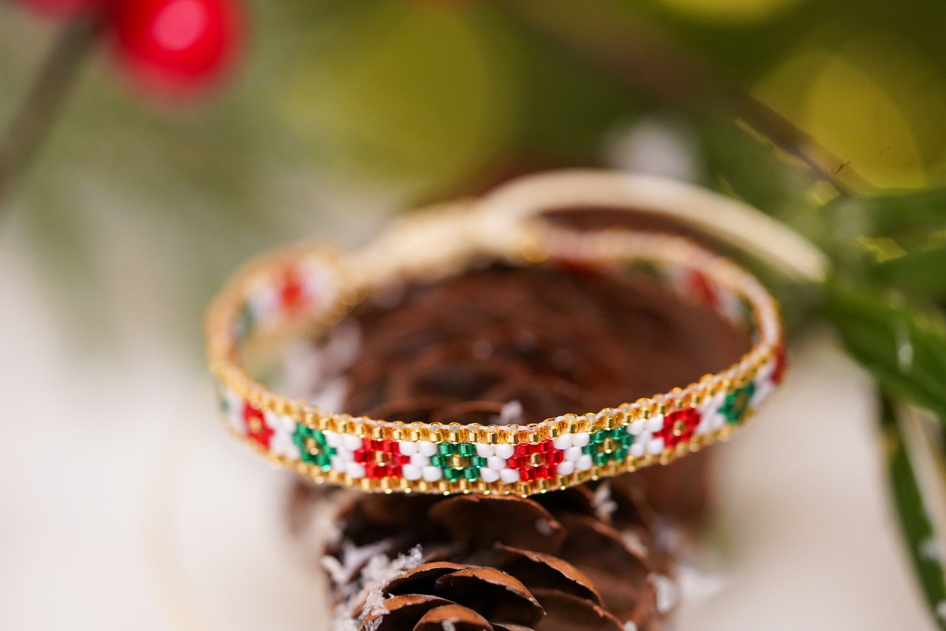🎄 This delicate Christmas bracelet is handcrafted with premium Miyuki seed beads, known for their exceptional quality, vibrant colors, and long-lasting shine. Each bead is woven with intention, creating a timeless piece that carries the warmth and magic of the holiday season.