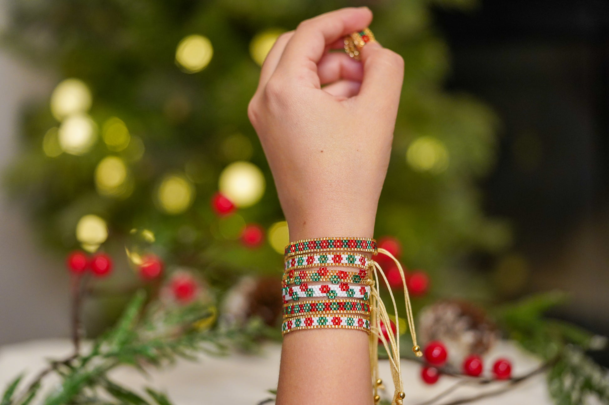 🎄 This delicate Christmas bracelet is handcrafted with premium Miyuki seed beads, known for their exceptional quality, vibrant colors, and long-lasting shine. Each bead is woven with intention, creating a timeless piece that carries the warmth and magic of the holiday season.