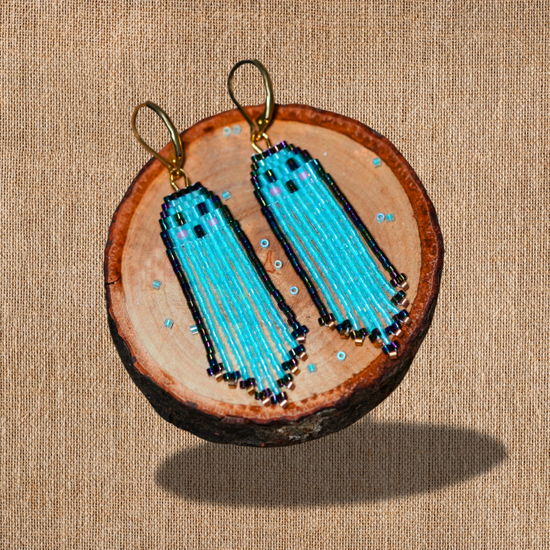 Each pair of earrings is handcrafted with the new Cylin Beads from John Bead, which glow in the dark ✨